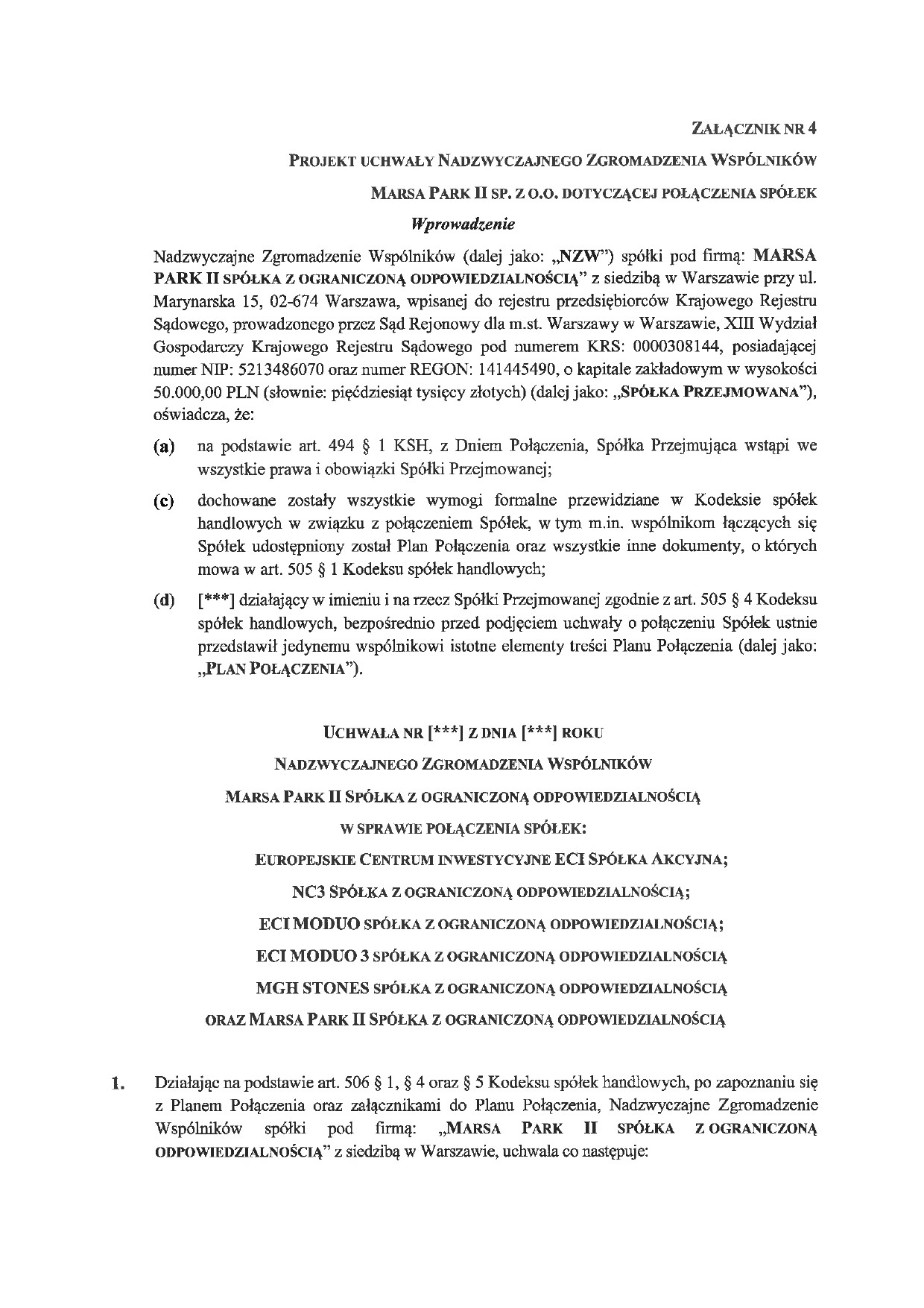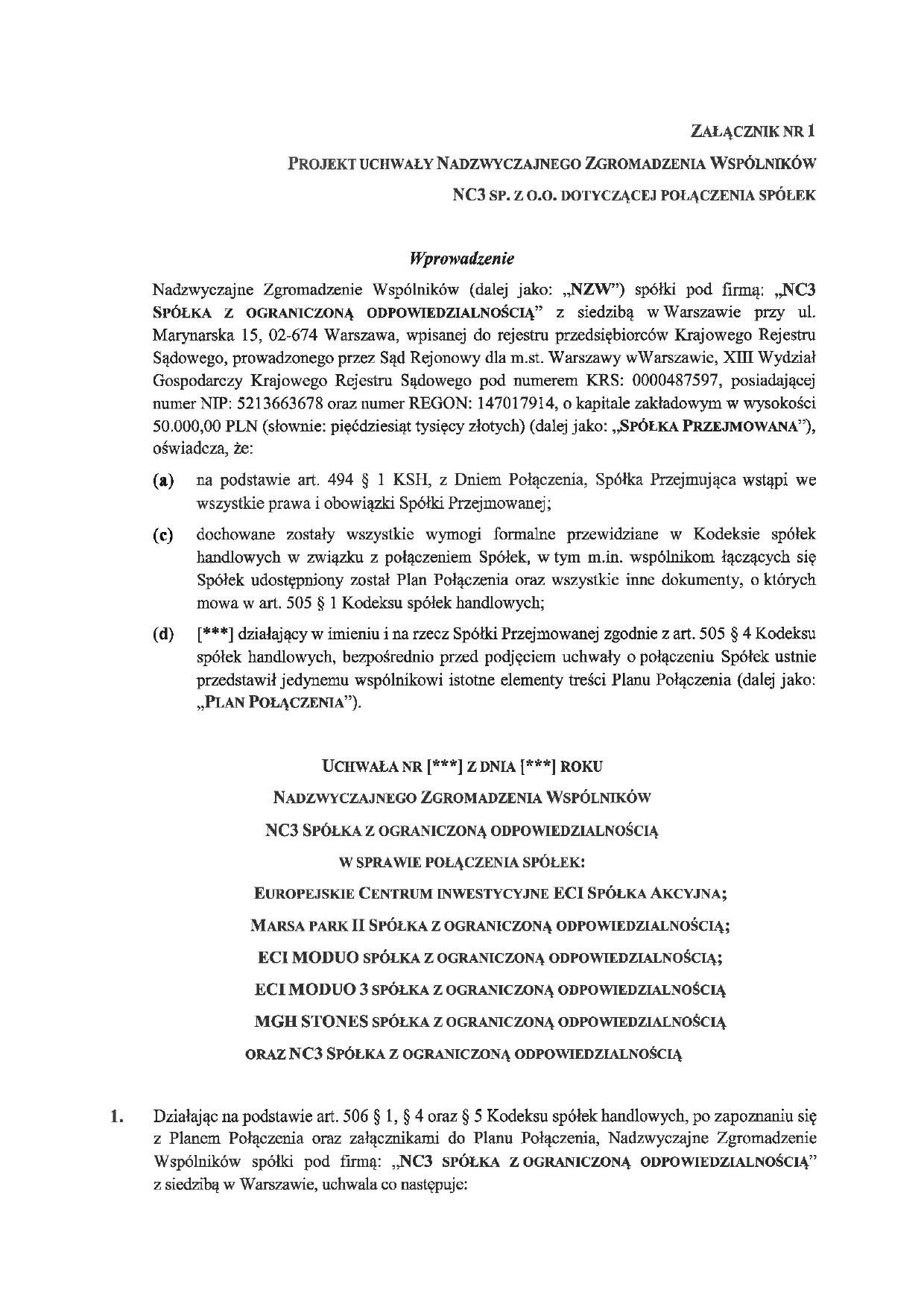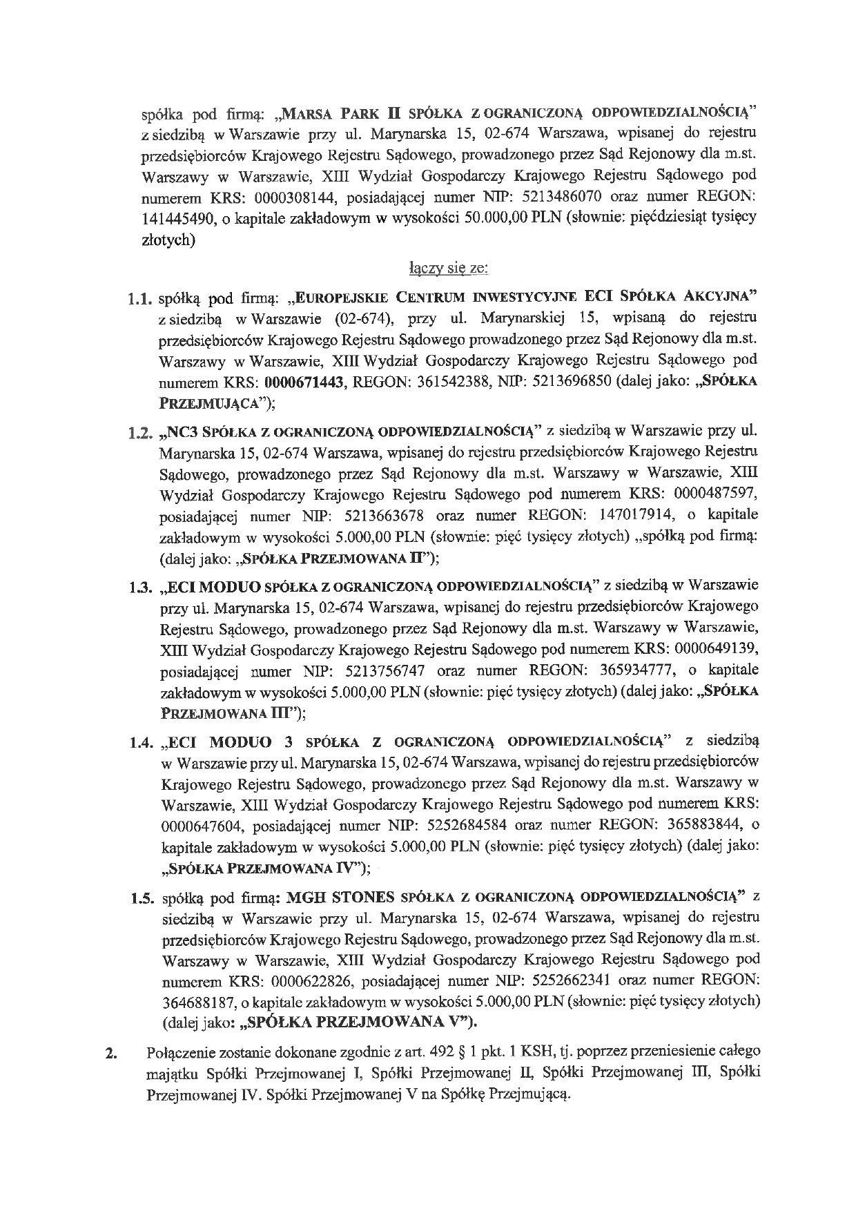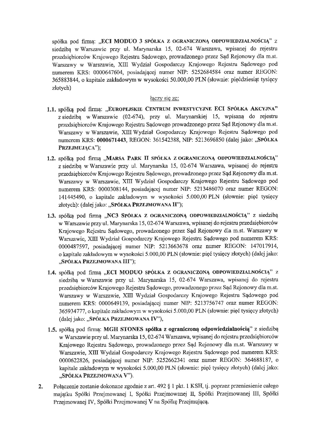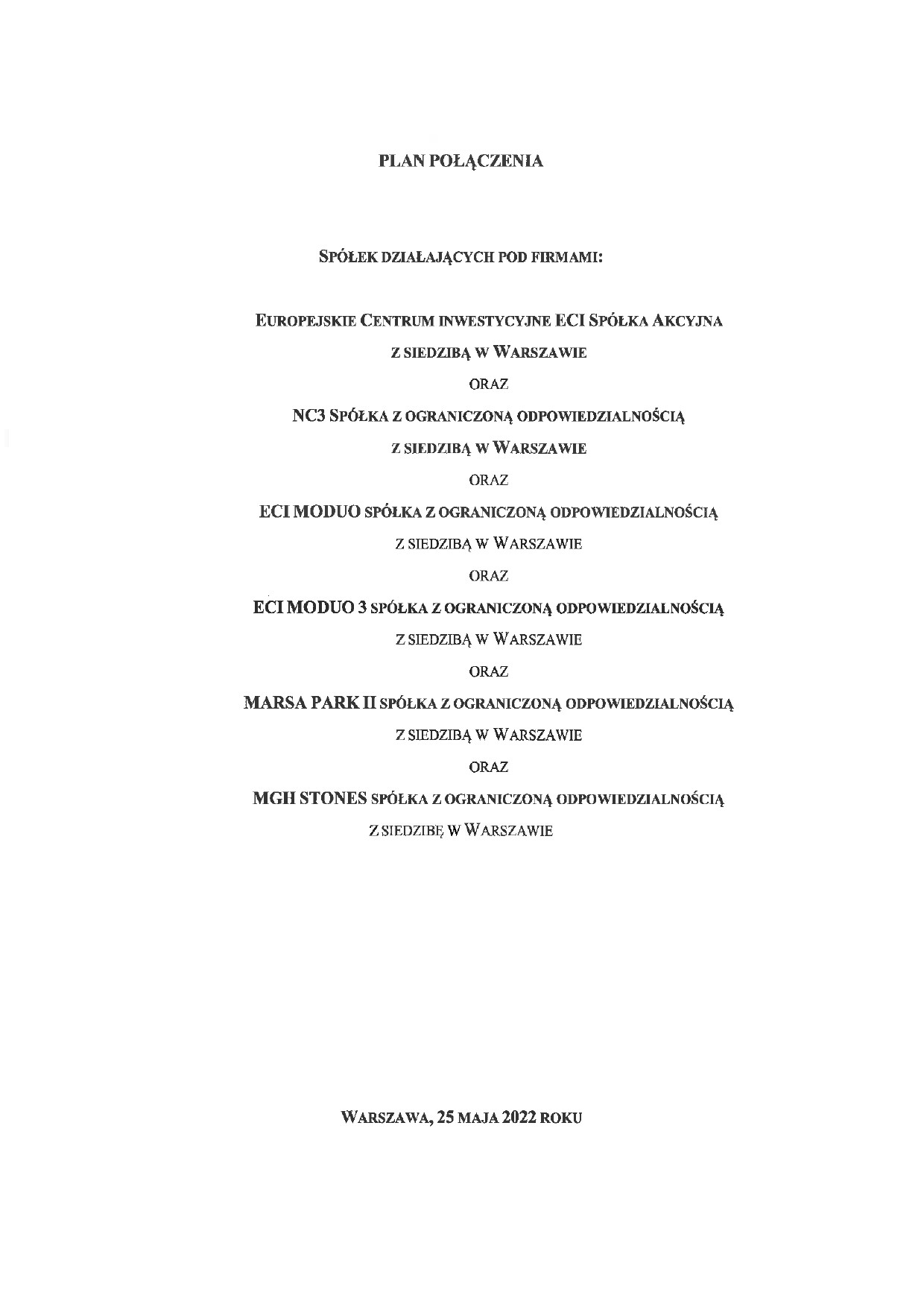 Plan połączenia spółek