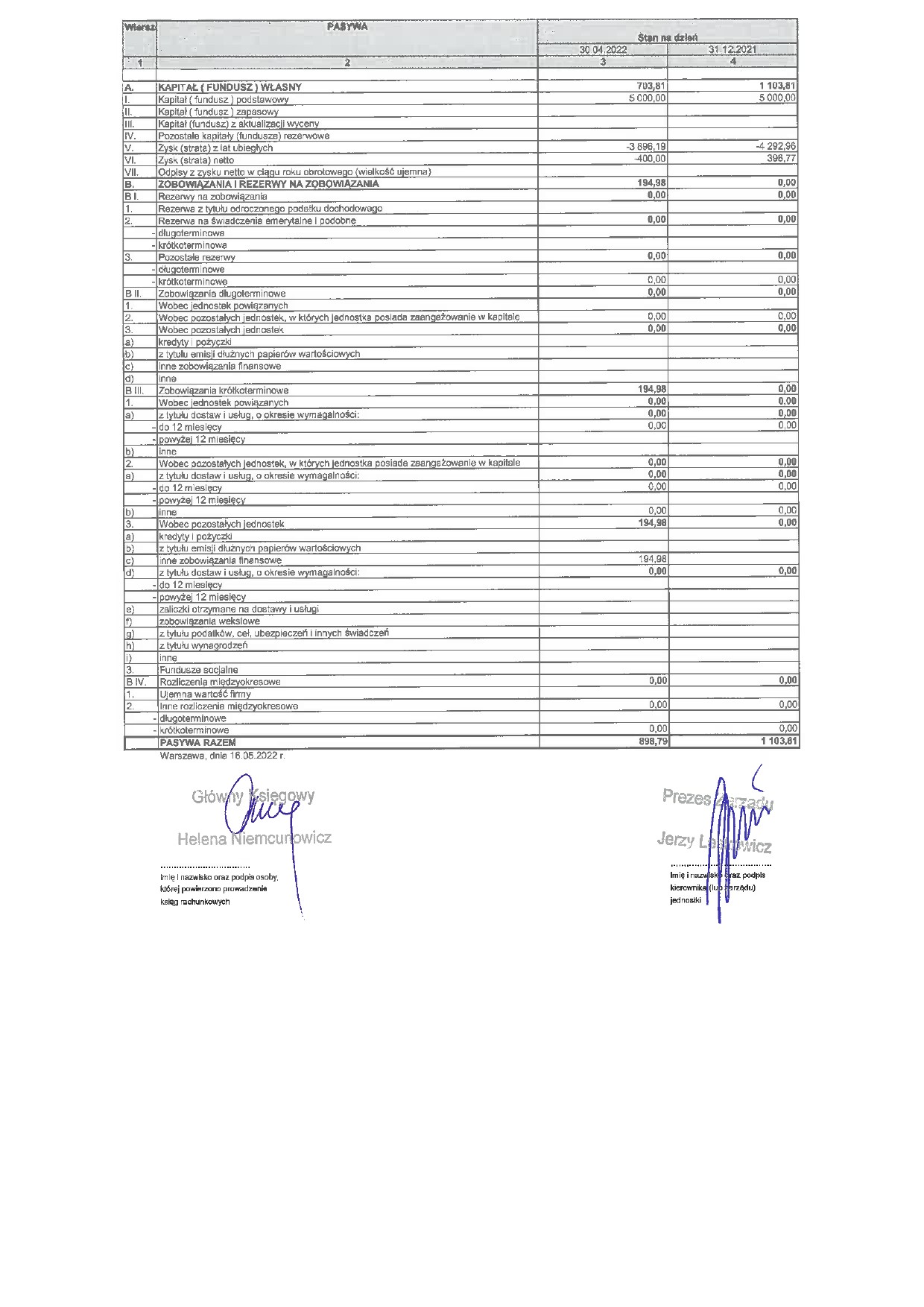 Dane spółki